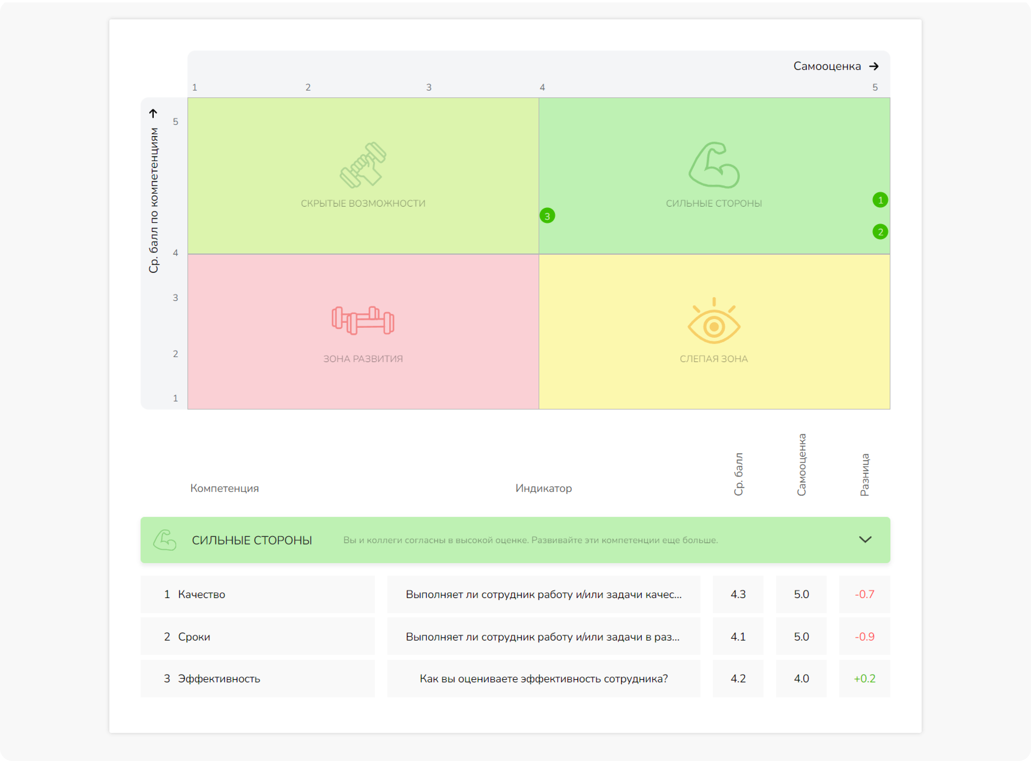 сводные и персональные отчеты укажут на сильные стороны и зоны роста;