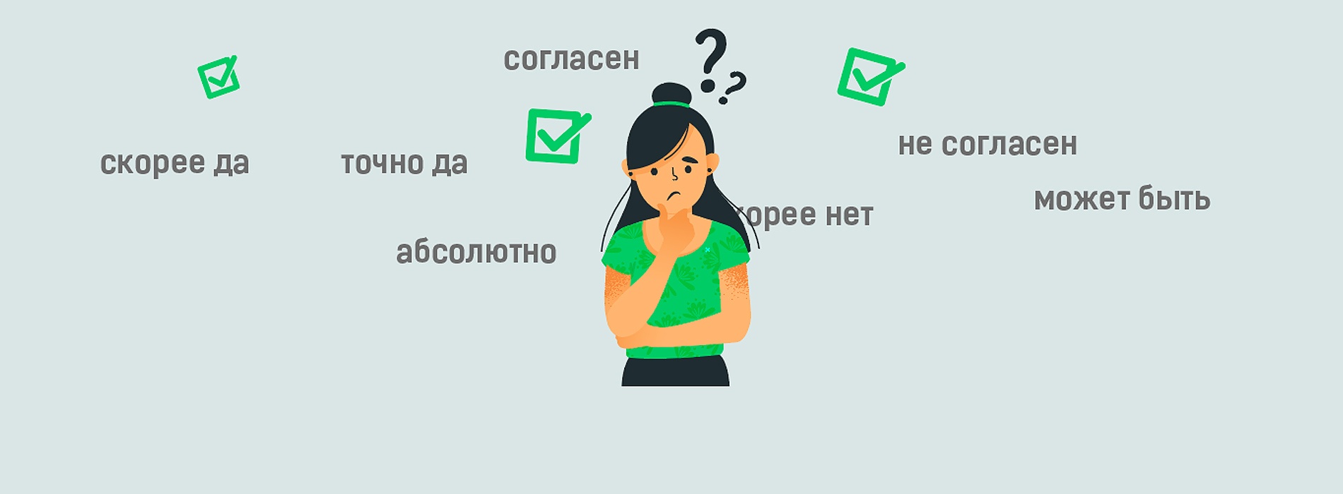 В опросах Happy Job изображения дополняют и вопросы, и ответы. Таким образом, риск, что респондент не поймёт, о чём его спрашивают, стремится к нулю.