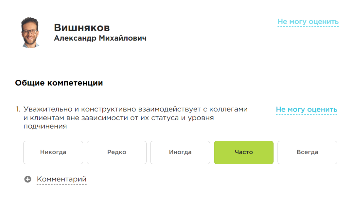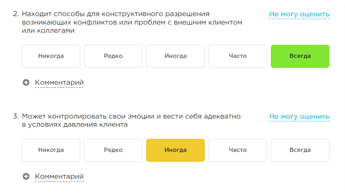 Примеры вопросов в оценке 360 на платформе FeedbackX